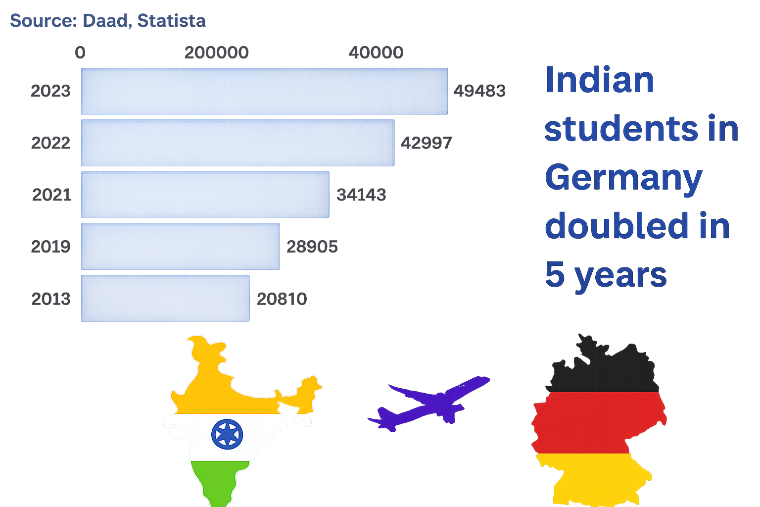 - The number of Indian students in Germany has reached a record-breaking 49,483 in 2023.